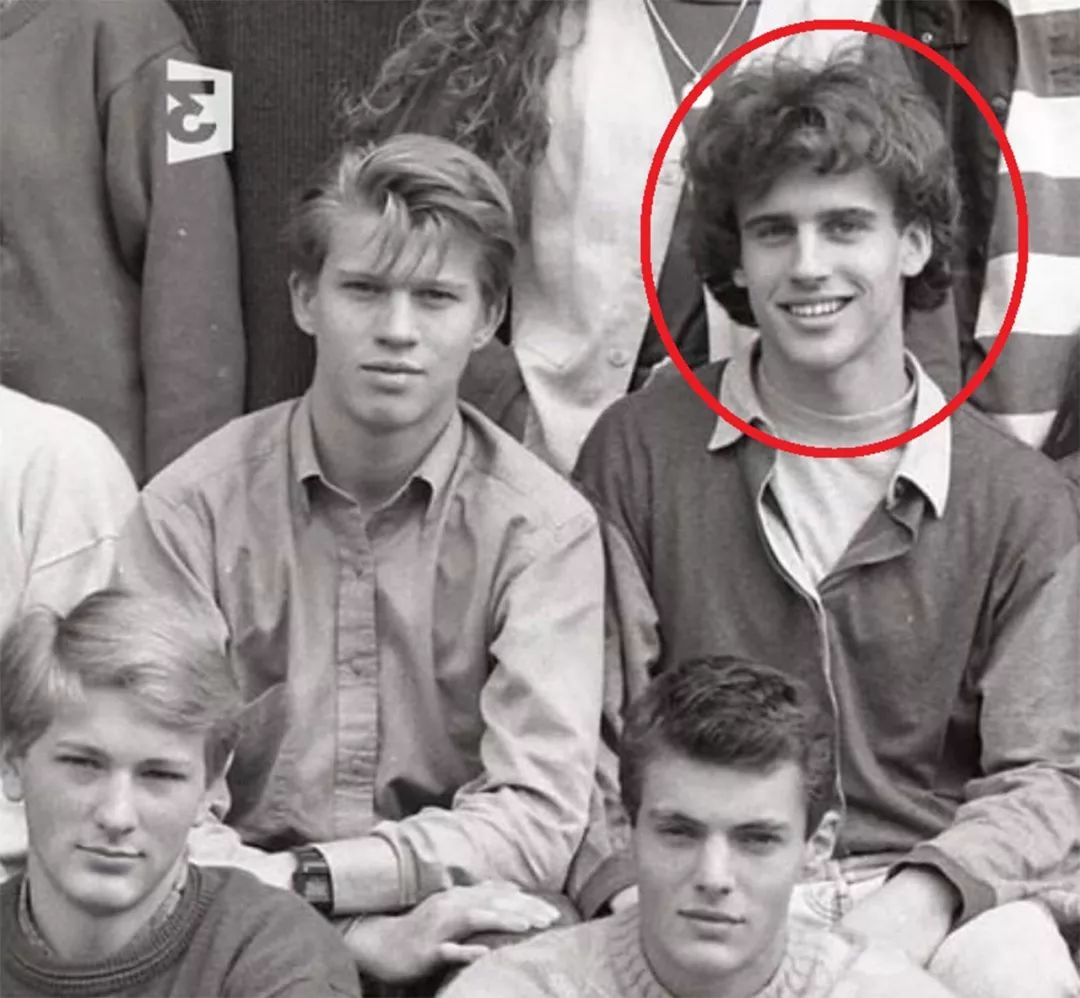 那不是后来西装革履、精英感拉满的政客,而是一个站在学生堆里,自带主角光环的少年。卷发乱翘,眉眼锋利,鼻梁挺得像雕出来的,笑起来牙齿白得晃眼。 那种帅,不是油腻的,是“你明知道他以后会很厉害”的那种。